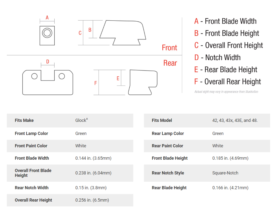 Fits Glock Model: 42, 43, 43x, 43E, and 48.