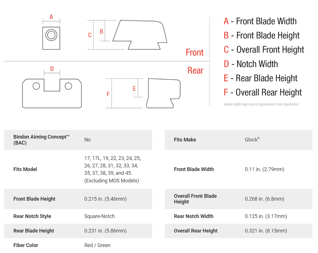 Fits Glock Models: 17, 17L, 19, 22, 23, 24, 25, 26, 27, 28, 31, 32, 33, 34, 35, 37, 38, 39 and 45. (Excluding MOS Models)