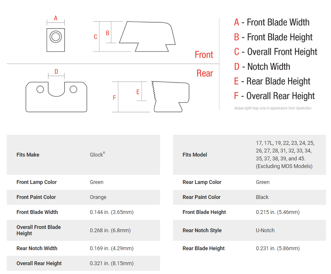 Fits Glock Model: 17, 17L, 19, 22, 23, 24, 25, 26, 27, 28, 31, 32, 33, 34, 35, 37, 38, 39, and 45. (Does not fit Glock MOS)