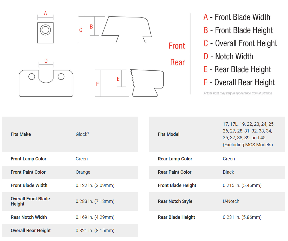 Fits Glock Models: 17, 17L, 19, 22, 23, 24, 25, 26, 27, 28, 31, 32, 33, 34, 35, 37, 38, 39, and 45. (Does not fit MOS)