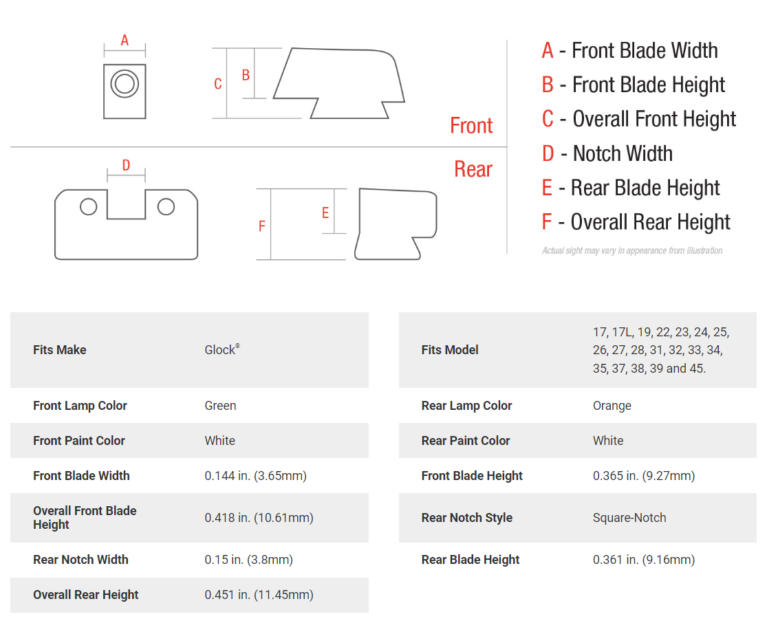 Fits Glock Models: 17, 17L, 19, 22, 23, 24, 25, 26, 27, 28, 31, 32, 33, 34, 35, 37, 38, 39 and 45.