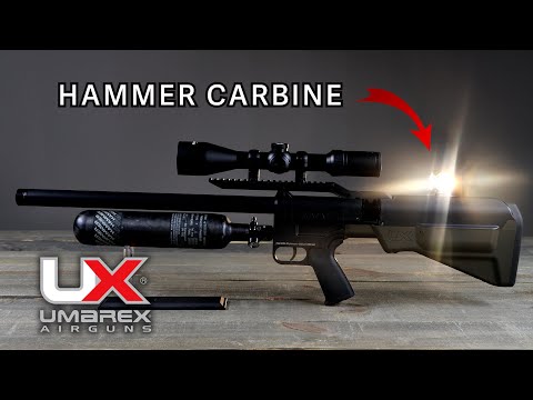 The Umarex Hammer now has some company, the Hammer Carbine. Like the original Hammer, the Hammer Carbine is a bolt action repeating big bore .50 caliber PCP slug gun made for airgun hunting. The Hammer Carbine notably features an improved twin shot pressure seal magazine, a larger 35 cubic inch carbon fiber tank, and a much handier, shorter barrel. Even though the barrel is shorter by a 6 1/4 inches, it still delivers big power, launching a 350 grain slug at 820 feet per second and producing 523 ft-lbs of energy. With the larger tank, shooters can expect to get a legitimate 4 full power shots from the shorter hunting rifle.